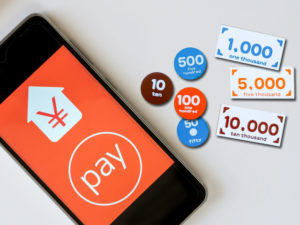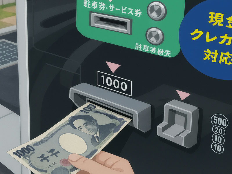 紙幣は、1,000円紙幣のみですので、キャッシュレスをご利用ください。
