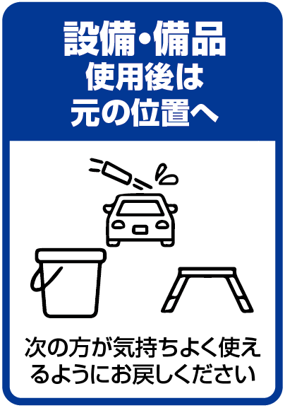 高圧洗浄機使用後は長時間の占有を避け、次の方と譲り合いながらご利用ください。
