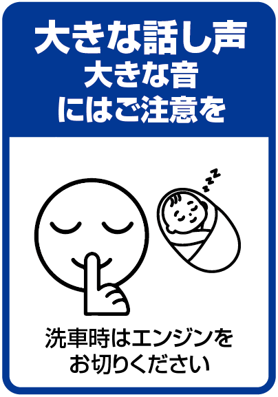 他のお客様や近隣住人様のご迷惑になるので、場内での大きな声やクラクションはお控えください。