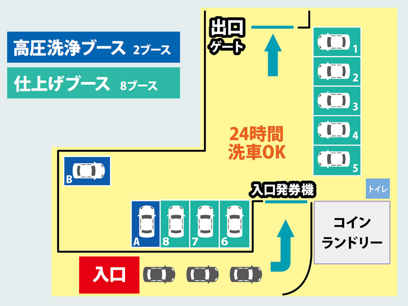 洗車・仕上げブース数と同じ台数の車が入場している場合、入場することはできません。※高圧洗浄ブースは満車の対象外です。